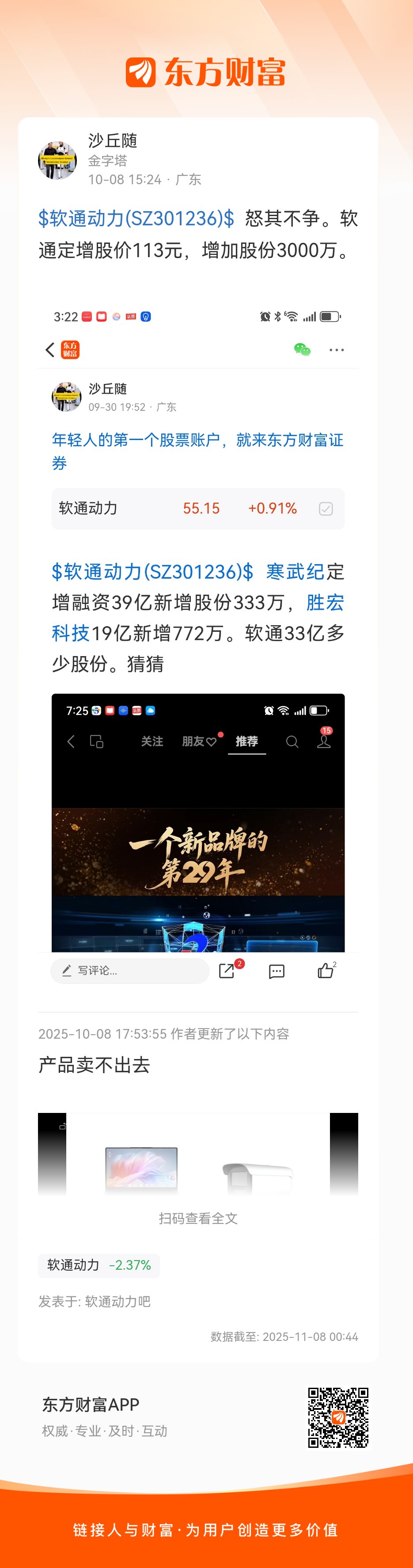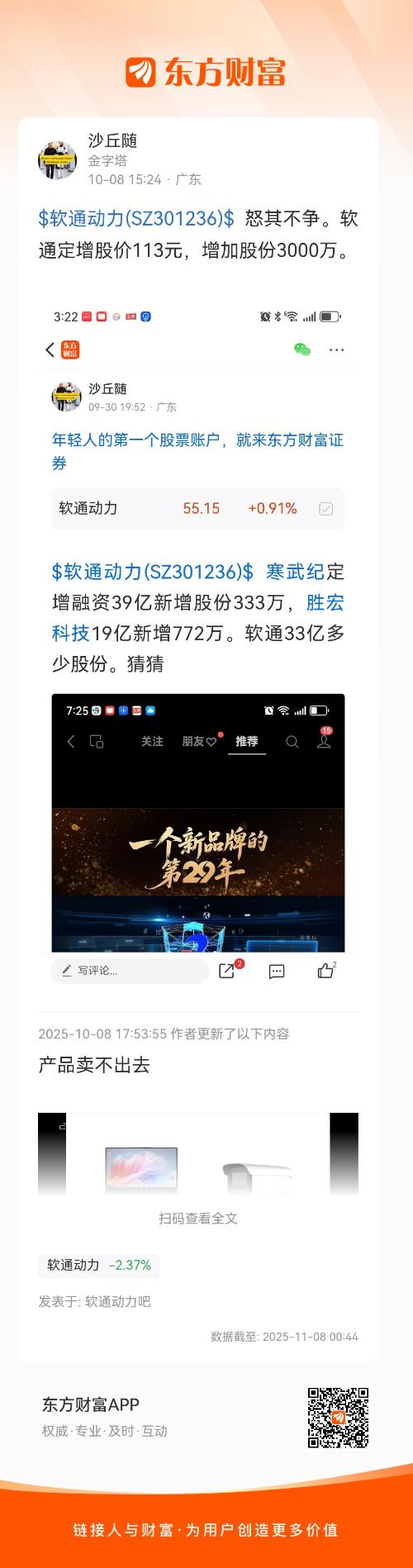 $软通动力(SZ301236)$  怒其不争。软通定增股价113元,增加股份3000万。