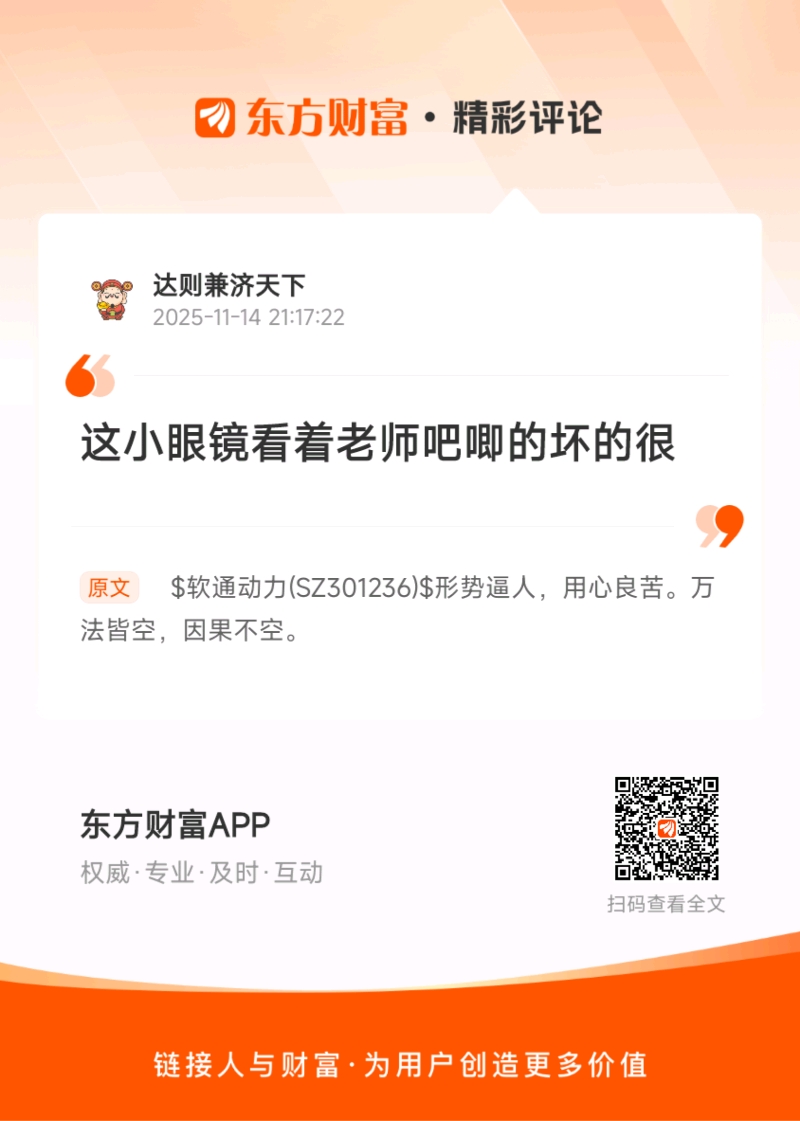 温馨提示: 1.根据《证券法》规定,禁止编造、传播虚假信息或者误导性信息,扰乱证券市场;2.用户在本社区发表的所有资料、言论等仅代表个人观点,与本网站立场无关,不对您构成任何投资建议。用户应基于自己的独立判断,自行决定证券投资并承担相应风险。《东方财富社区管理规定》