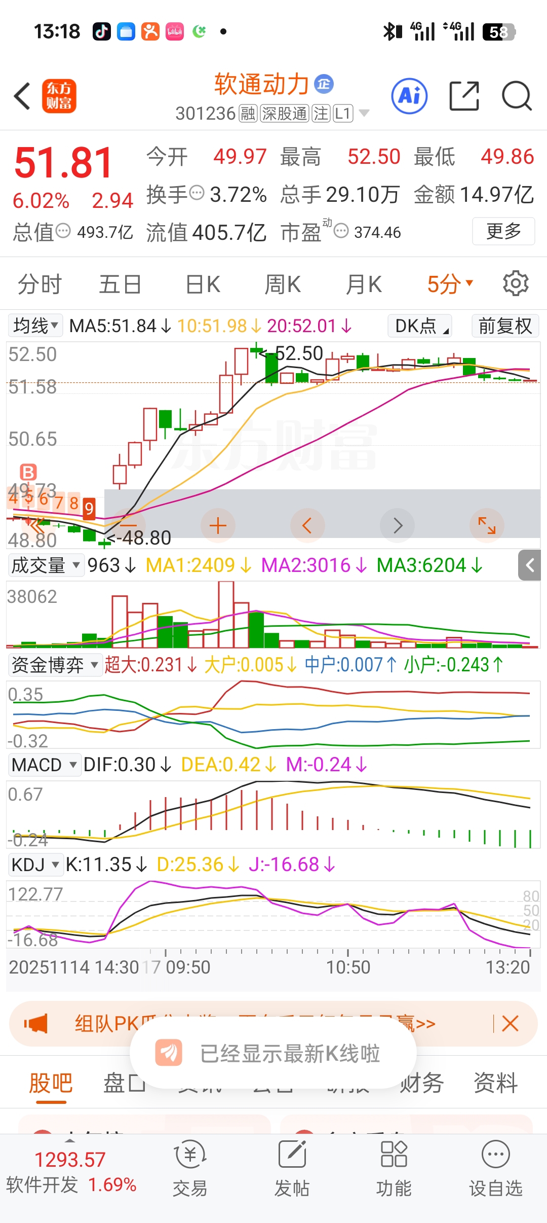 $软通动力(SZ301236)$ K线说明什么问题?请大师指导一下。