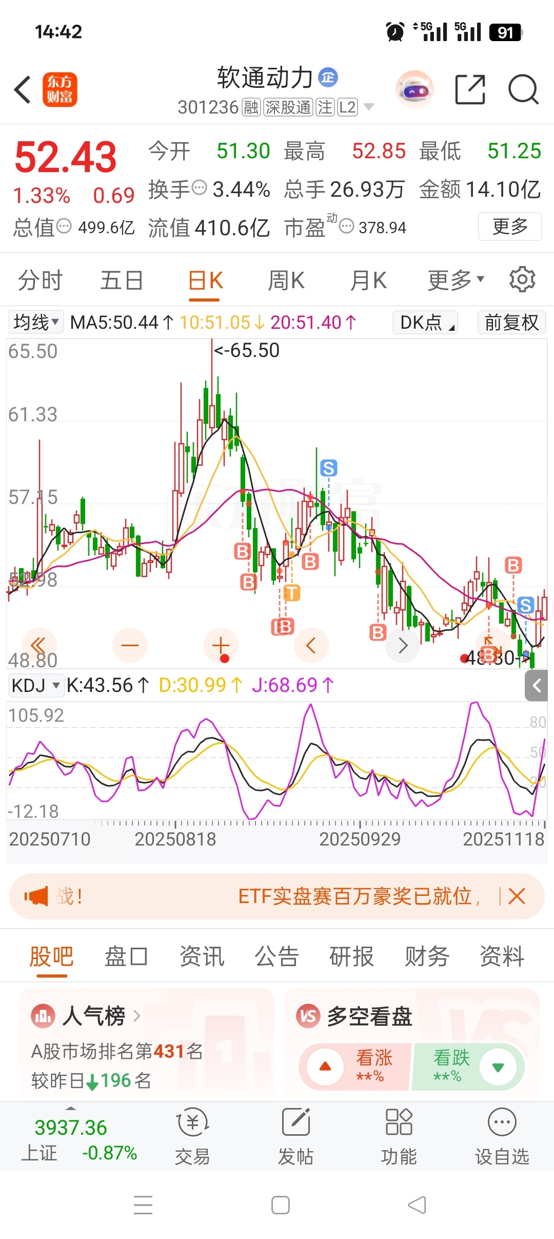 $软通动力(SZ301236)$ 现在只要一涨,我就心里难受