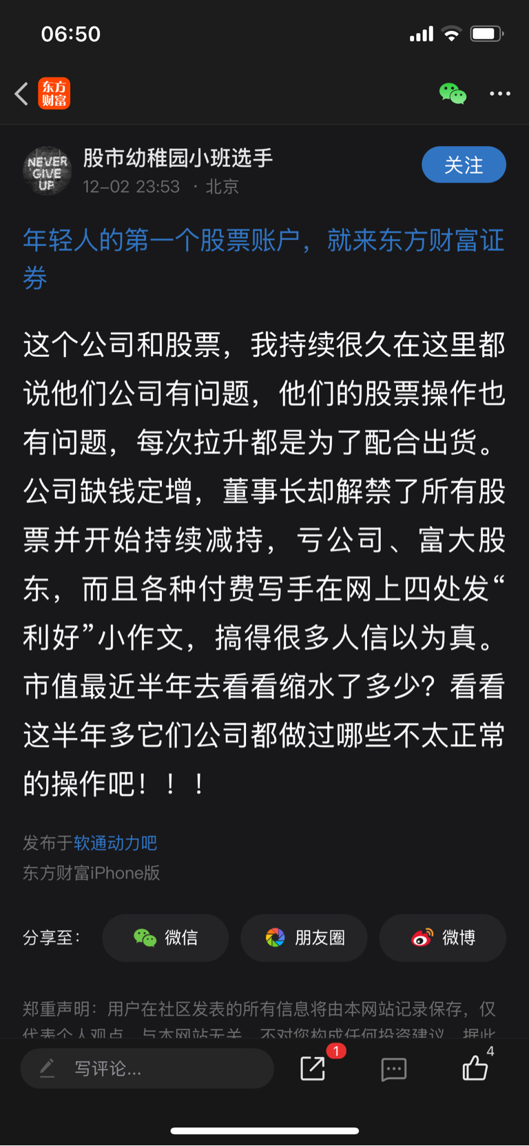 温馨提示: 1.根据《证券法》规定,禁止编造、传播虚假信息或者误导性信息,扰乱证券市场;2.用户在本社区发表的所有资料、言论等仅代表个人观点,与本网站立场无关,不对您构成任何投资建议。用户应基于自己的独立判断,自行决定证券投资并承担相应风险。《东方财富社区管理规定》