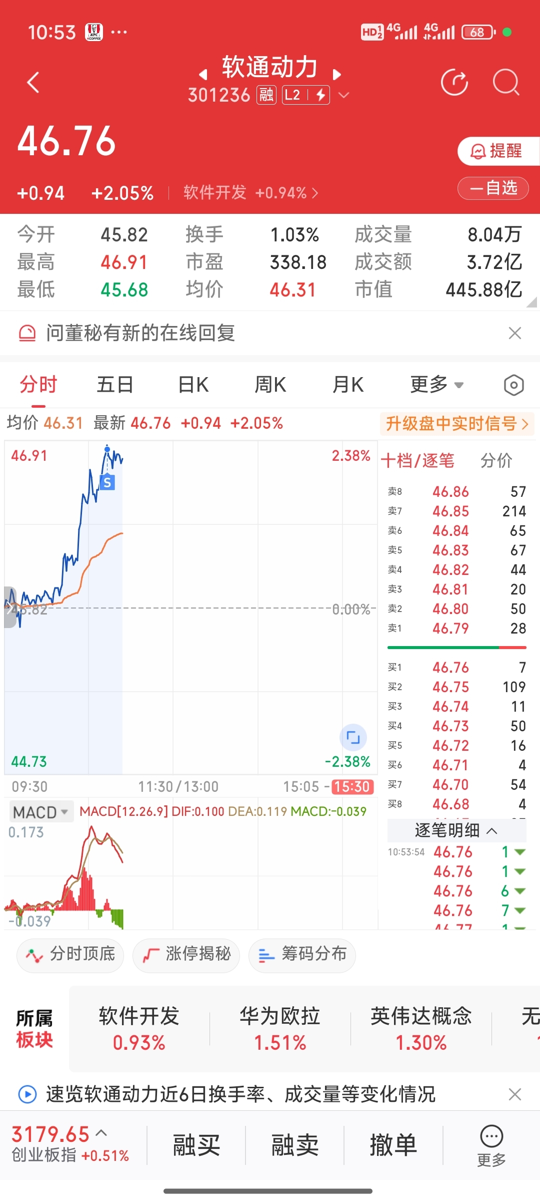 $软通动力(SZ301236)$ 挣两个点不后悔 上不去了