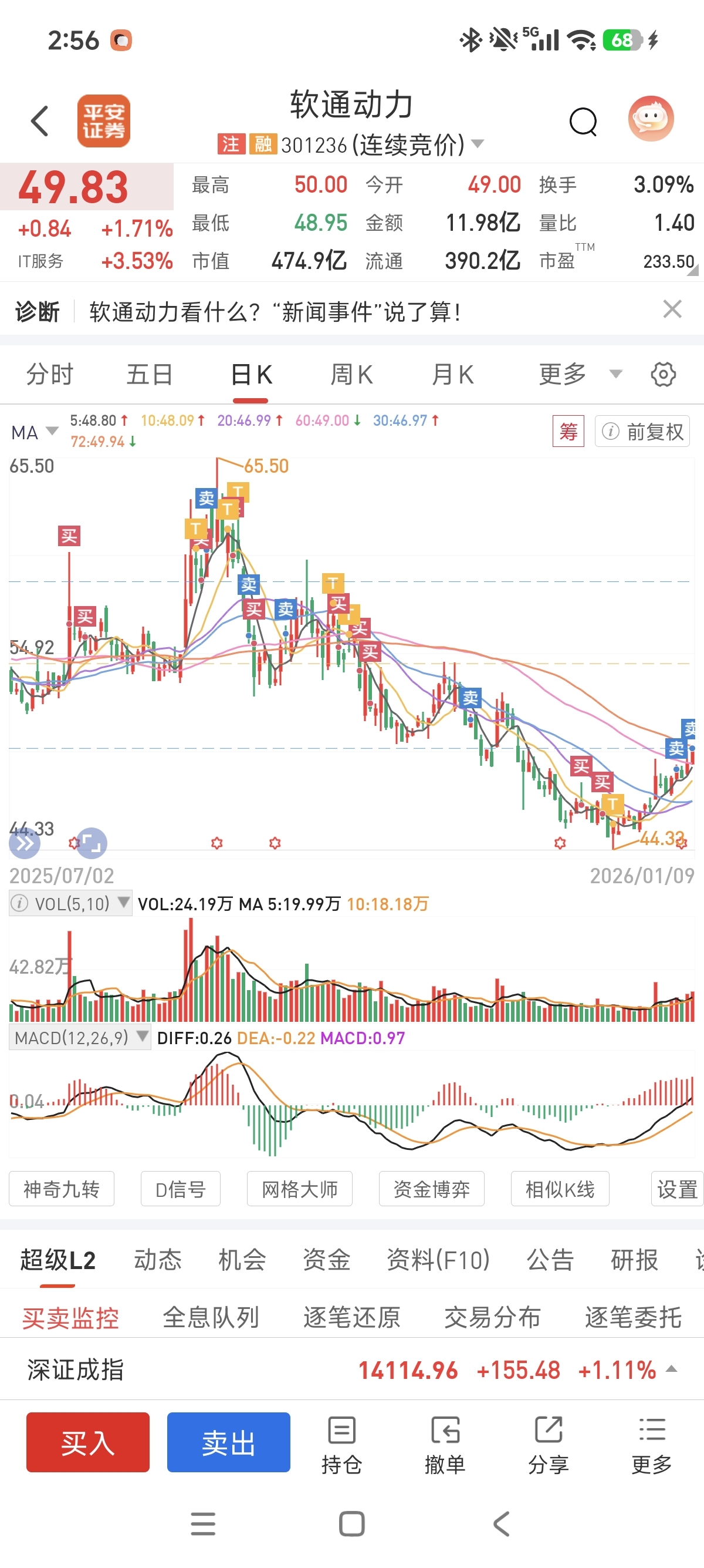 $软通动力(SZ301236)$ 随你了,前期低位买的全部出完,高位的,慢慢熬吧!