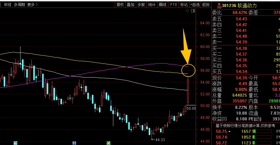 $软通动力(SZ301236)$ 中期趋势不算强,但近期反弹拉升起来,幅度比较可观,短线重点就看能否继续拉高,头上大均线55.43-56.61位置压力大,还能拉起来如果不能站站稳,建议高抛为主,降低仓位应对回落风险,如果这里先调整,回落不能低于52.66位置支撑,不然整体就弱了,需要严格控制仓位。#复盘记录# #炒股日记#
