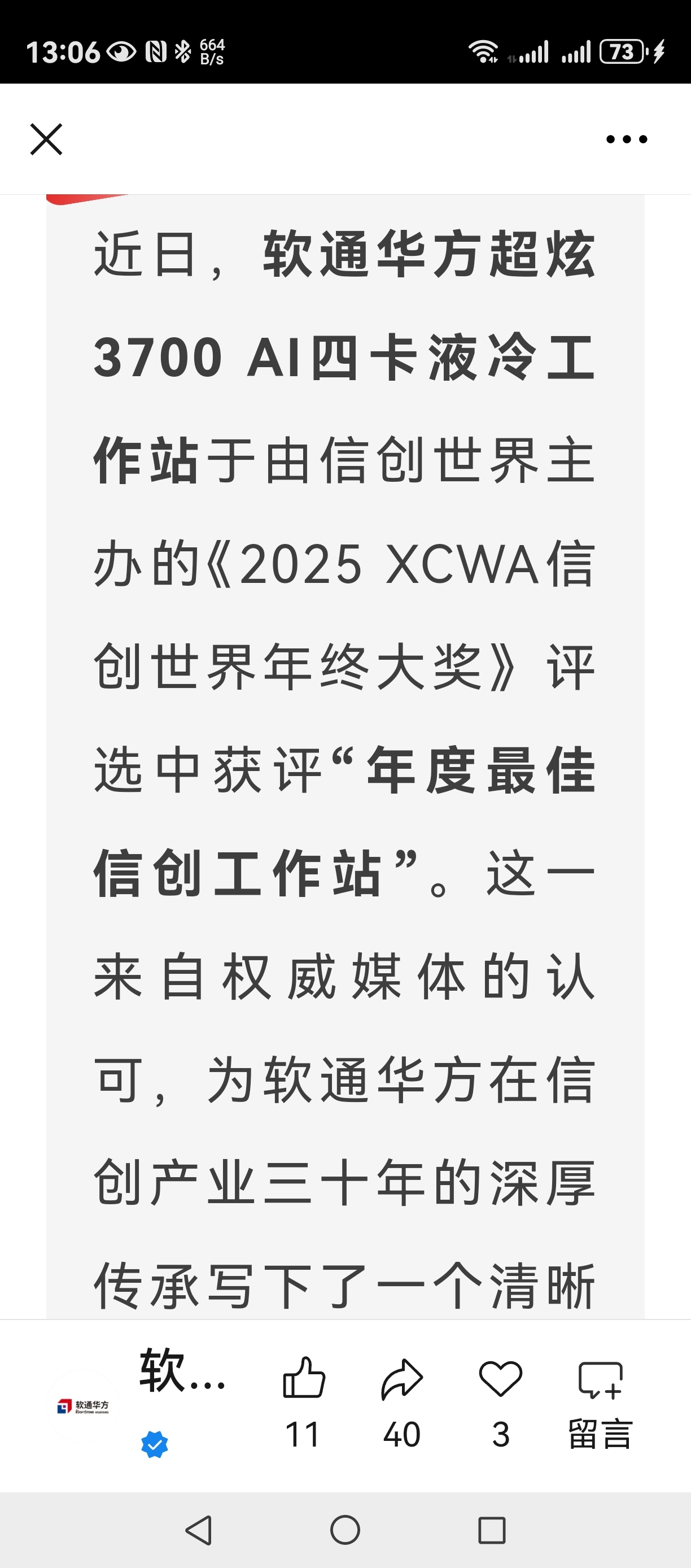 软通华方超炫3700AI四卡液冷工作站获权威认可,定义AI算力新密度
