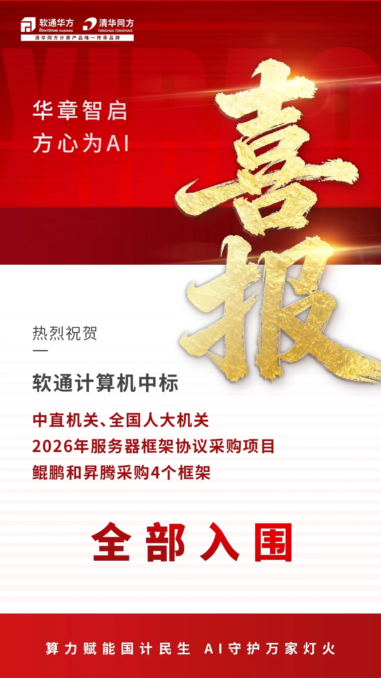 热烈祝贺!软通计算机中标中直机关、全国人大机关2026年服务器框架协议采购项目