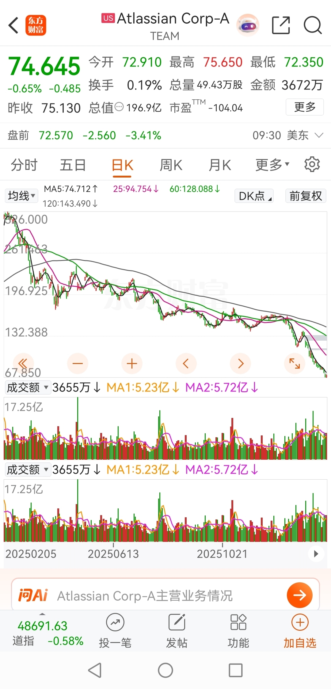 美股的,软件股,绝大部分已经腰斩!很多都是,世界软件巨头!有些几百亿RMB的小市