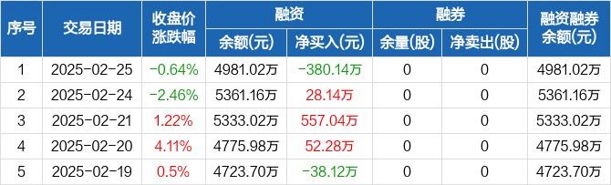 和顺科技:融资净偿还380.14万元,融资余额4981.02万元(02-25)
