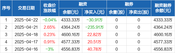 和顺科技:融资净偿还30.91万元,融资余额4333.33万元(04-22)