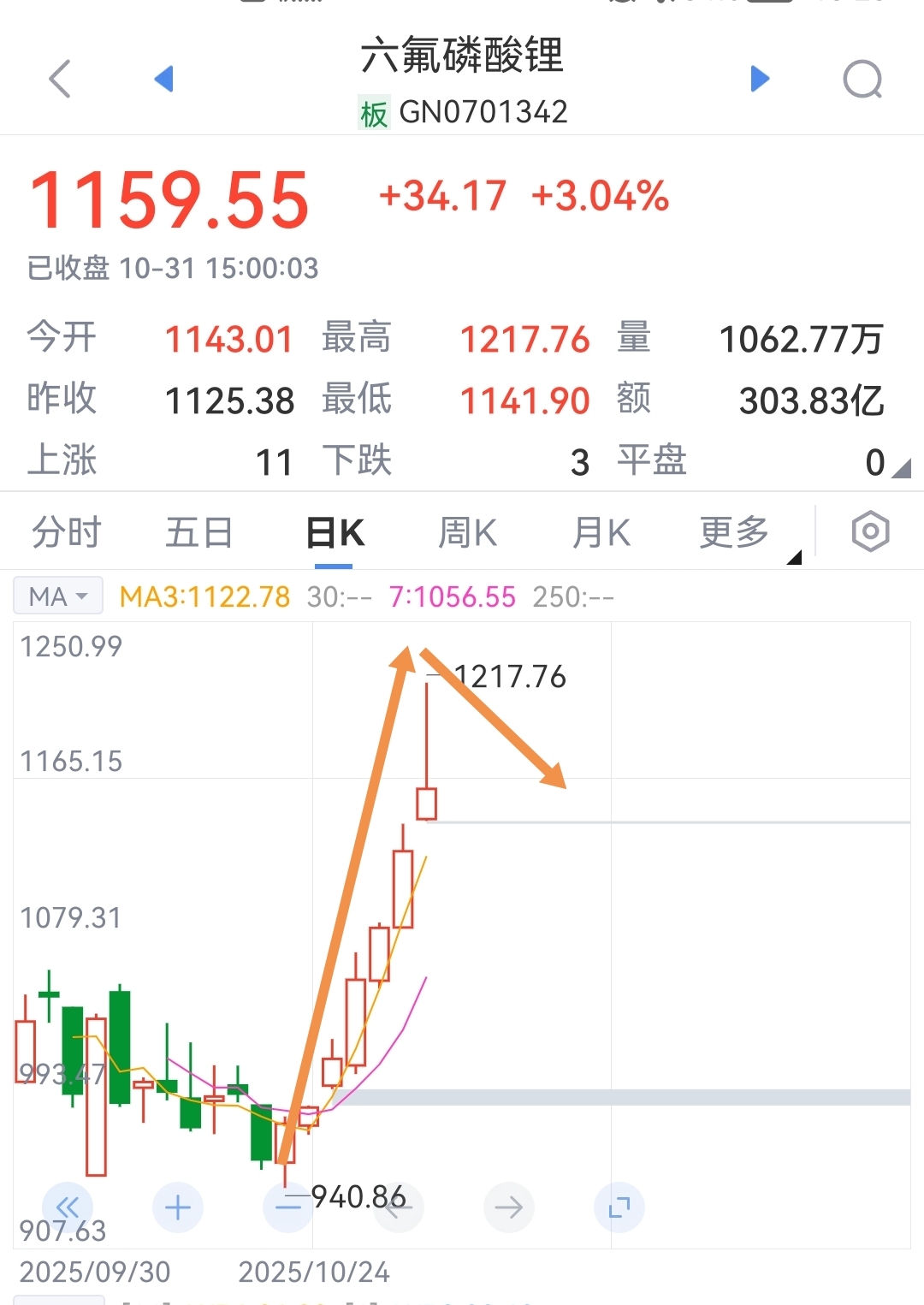 $瑞泰新材(SZ301238)$ 六氟磷酸锂短期高点出现,下周可能回踩一下。