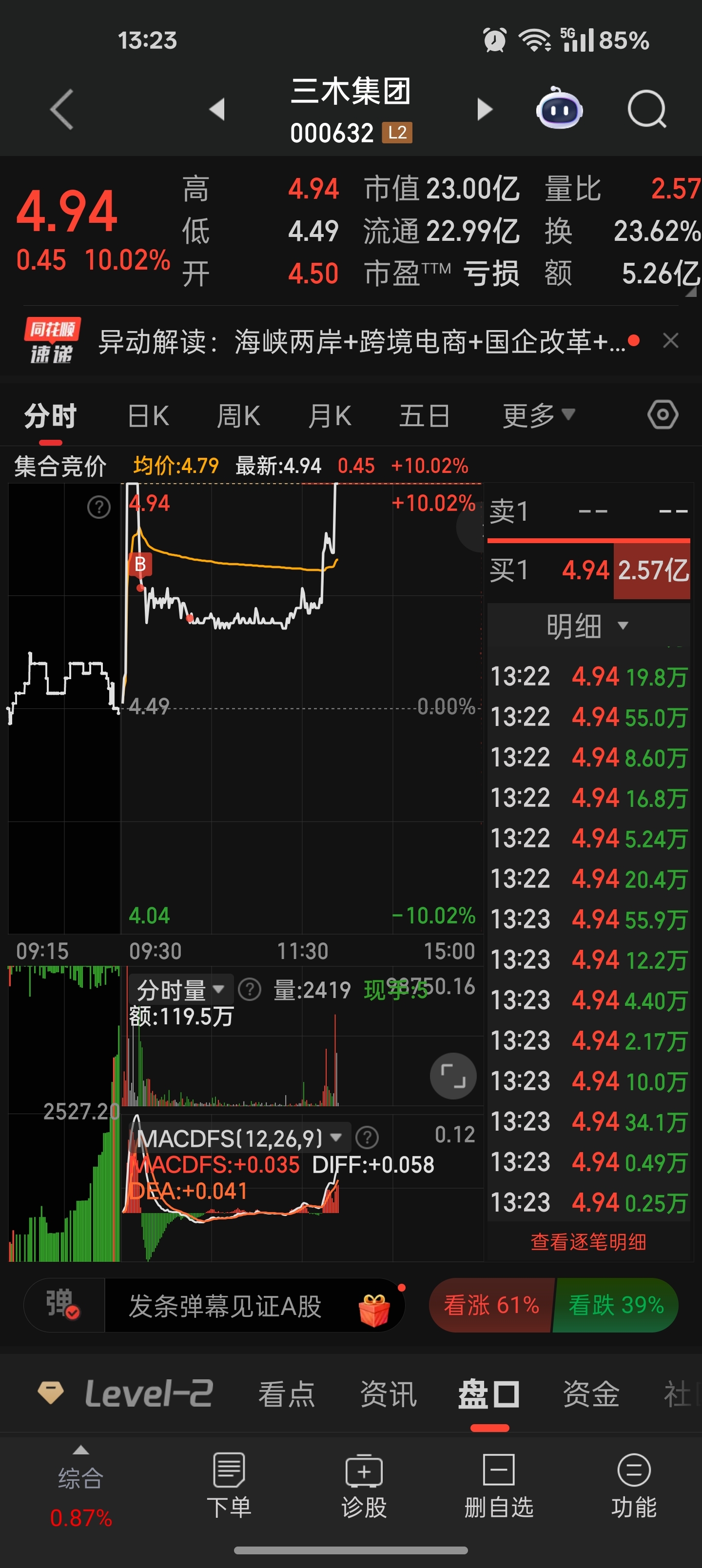 今天就操作了3笔,这笔我是没想通,为什么会炸得这么狠做天际的补涨,20cm