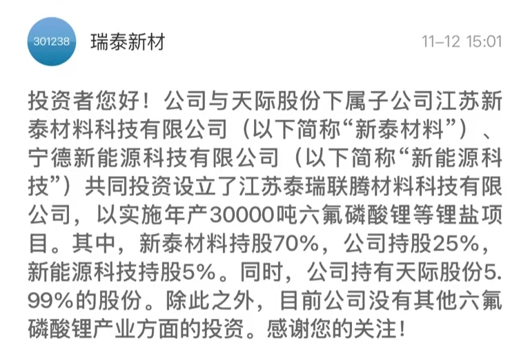 $瑞泰新材(SZ301238)$ 直接持股天际,这个产能的配额应该是7500吨