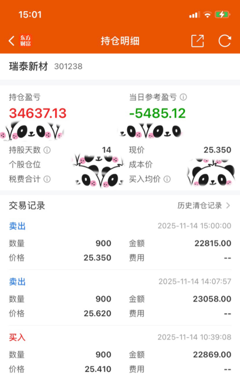 $瑞泰新材(SZ301238)$ 本来只是小T一下,结果把我前几天25.43的筹码也“吓”出来了