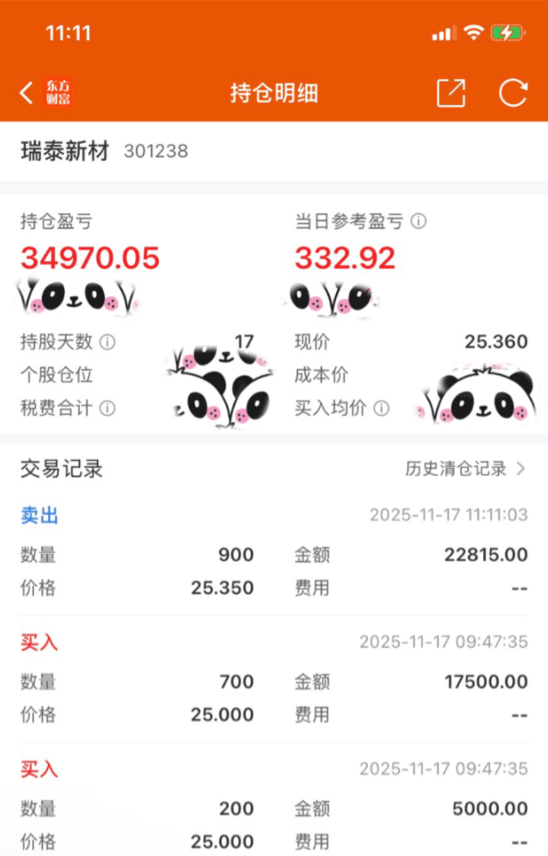$瑞泰新材(SZ301238)$ 把上周五怒亏的8分钱,今天T回来还给我了
