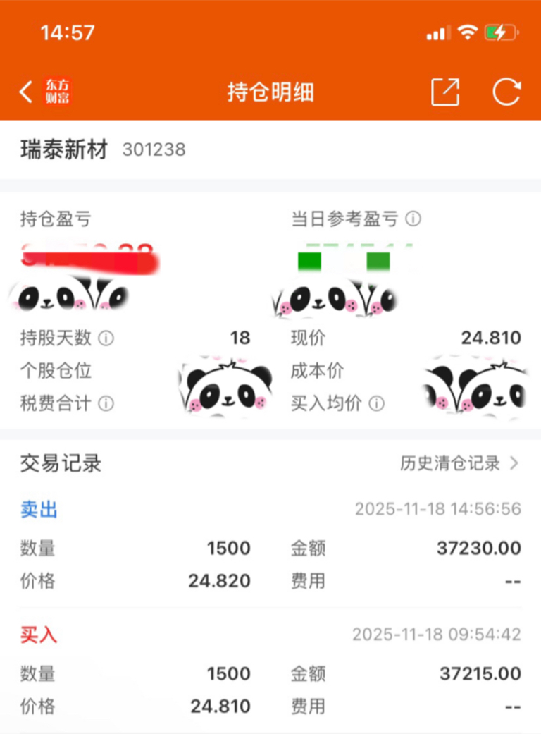 $瑞泰新材(SZ301238)$ 你牛,亏个手续费