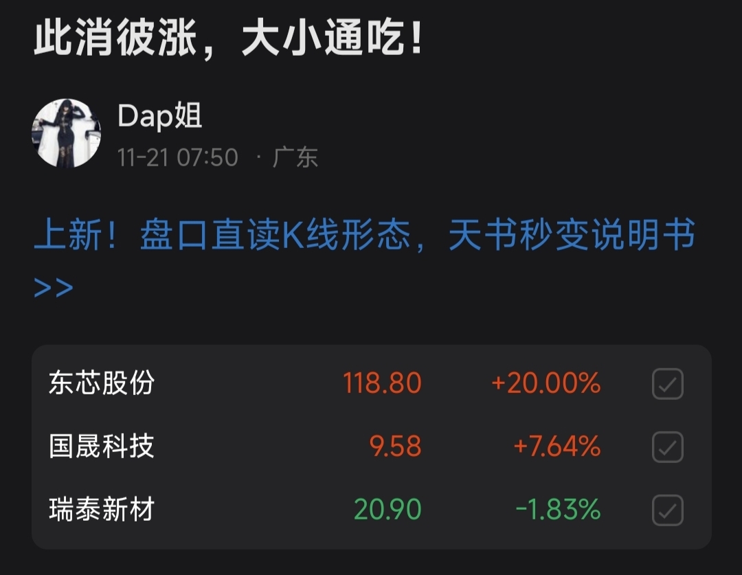 东芯股份 自家减持又迎来一波上涨,续投砺算科技的资金就来自于上一波减持。这逻辑比东芯增发还硬。