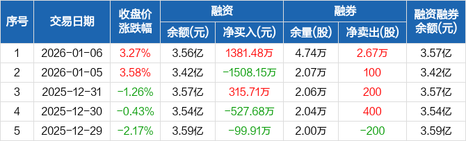 瑞泰新材:融资净买入1381.48万元,融资余额3.56亿元(01-06)