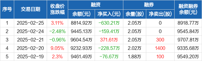 普瑞眼科:融资净偿还630.21万元,融资余额8814.92万元(02-25)