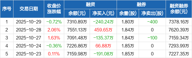 普瑞眼科:融资净偿还240.24万元,融资余额7310.89万元(10-29)