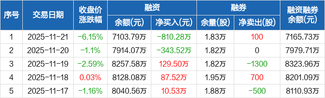 普瑞眼科:融资净偿还810.28万元,融资余额7103.79万元(11-21)
