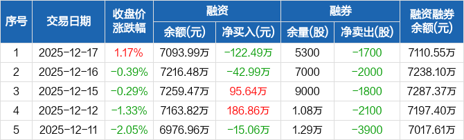 普瑞眼科:融资净偿还122.49万元,融资余额7093.99万元(12-17)