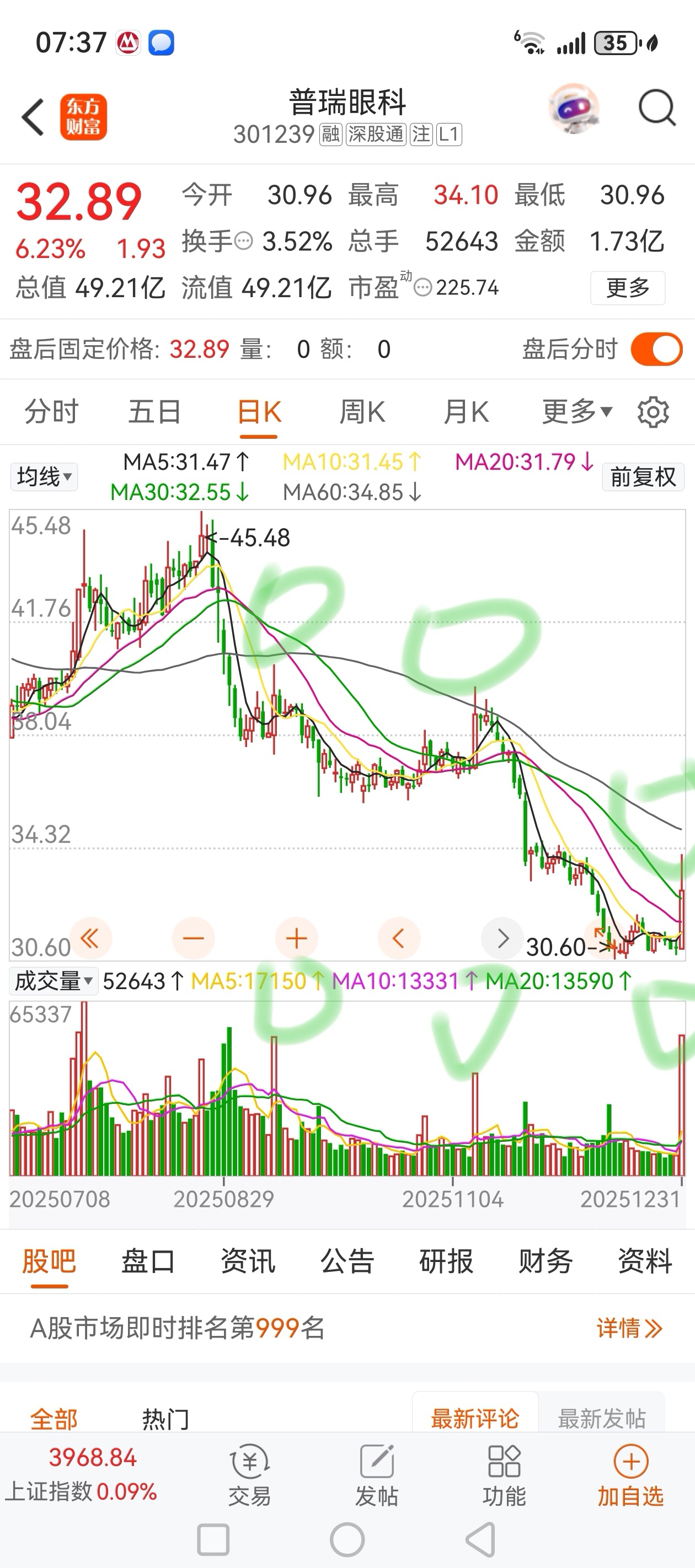 $普瑞眼科(SZ301239)$ 是不是有点后怕了!下周一量上不来就要破28.48。