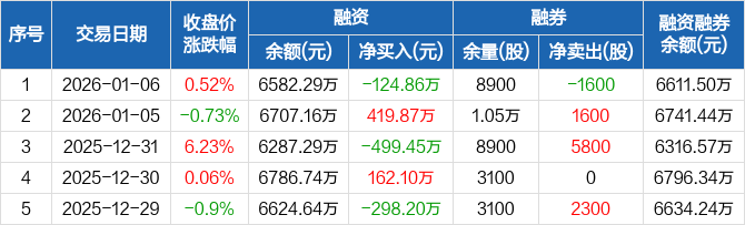 普瑞眼科:融资净偿还124.86万元,融资余额6582.29万元(01-06)