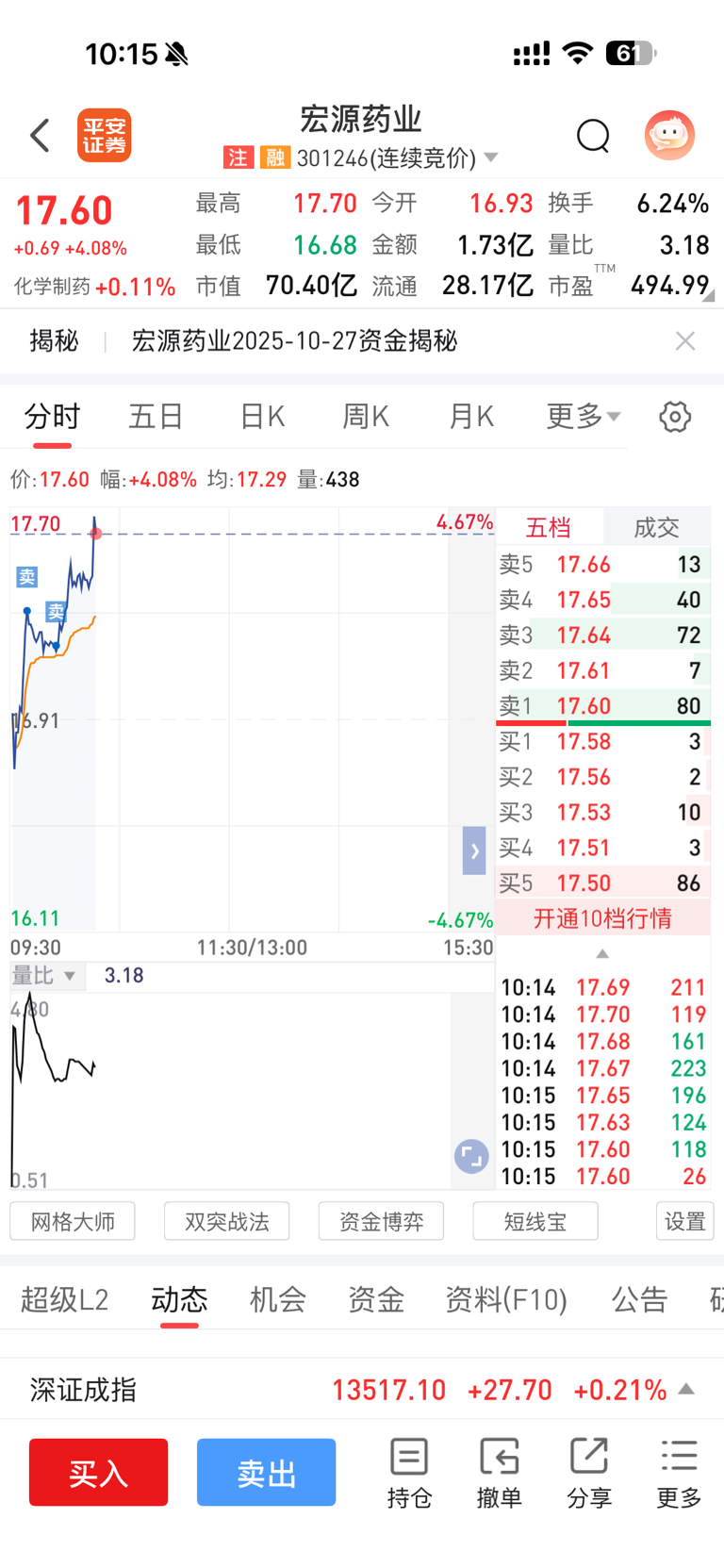 $宏源药业(SZ301246)$ 卖飞大了,留下发财