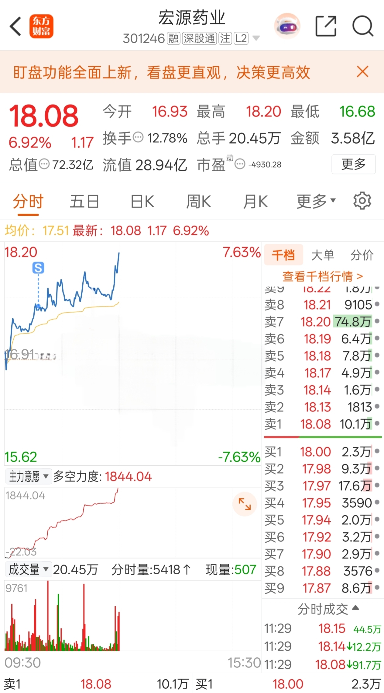 $宏源药业(SZ301246)$ 别这样好吗,待了这么多天,卖飞了
