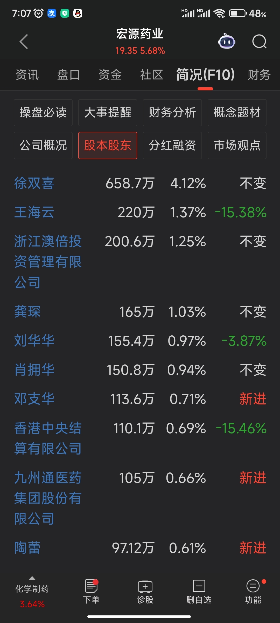 $宏源药业(SZ301246)$ 外资高盛摩根瑞银ubs总和股数显示是香港中央登记结算公司,十大股东中排名第8,高盛摩根持有,必有原因
