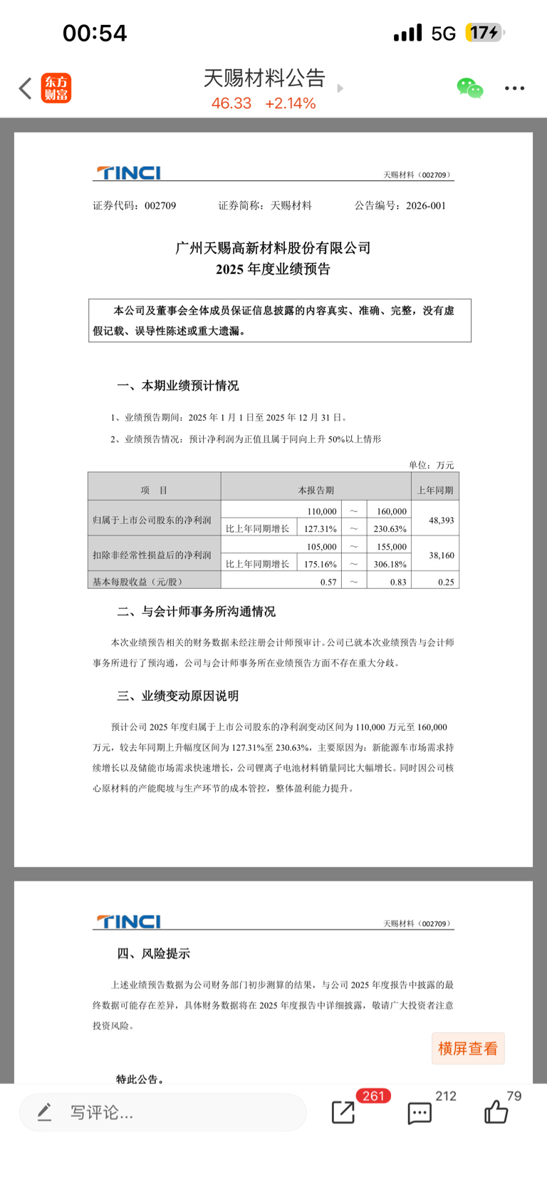 $宏源药业(SZ301246)$ 看看天赐材料的 炸裂业绩.... 等待 宏源药业的 业绩预告, 重返50元