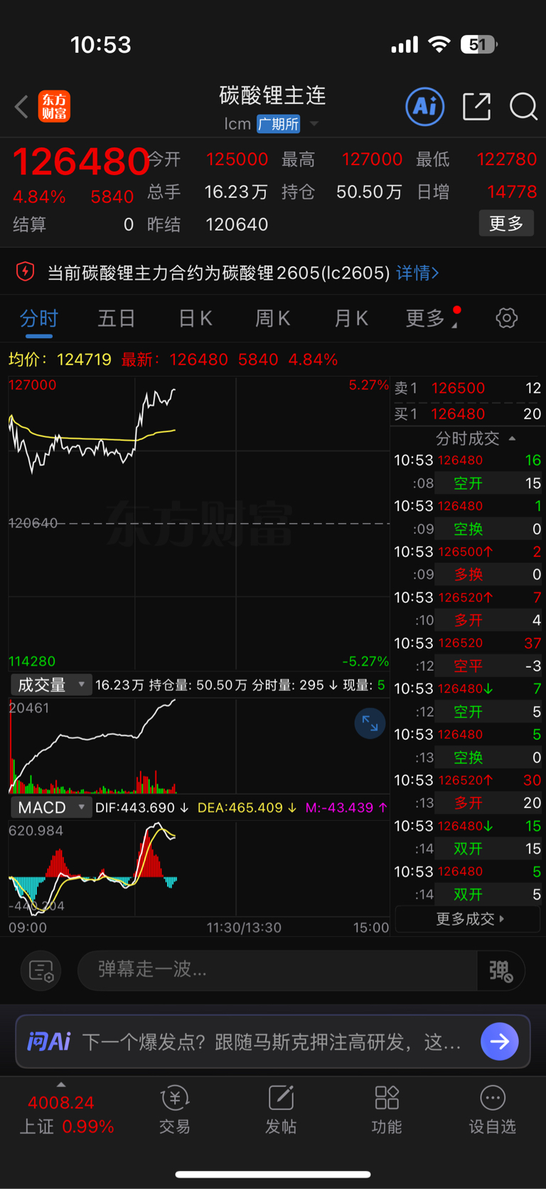 今日碳酸锂蹭蹭上涨啊