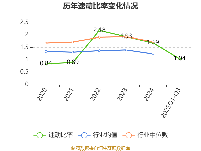 2025年前三季度,公司流动比率为1.3,速动比率为1.04。