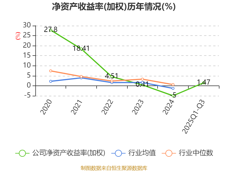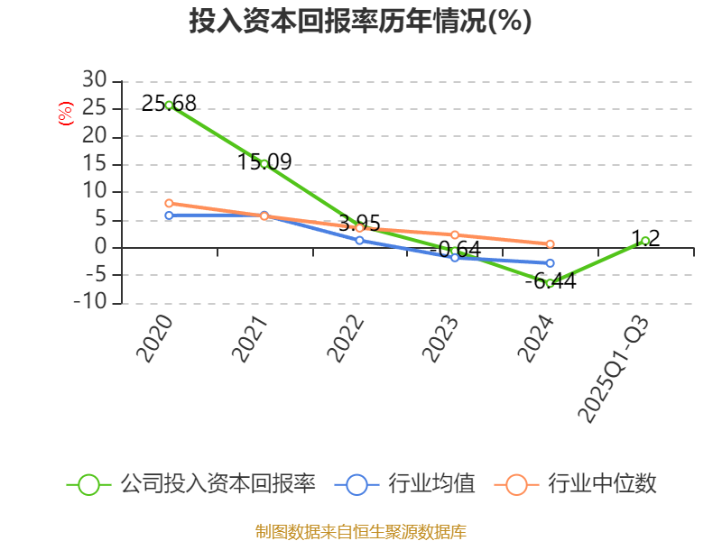 盈利能力方面, 2025年前三季度公司加权平均净资产收益率为1.47%,同比上升5.48个百分点。公司2025年前三季度投入资本回报率为1.2%,较上年同期上升5.63个百分点。