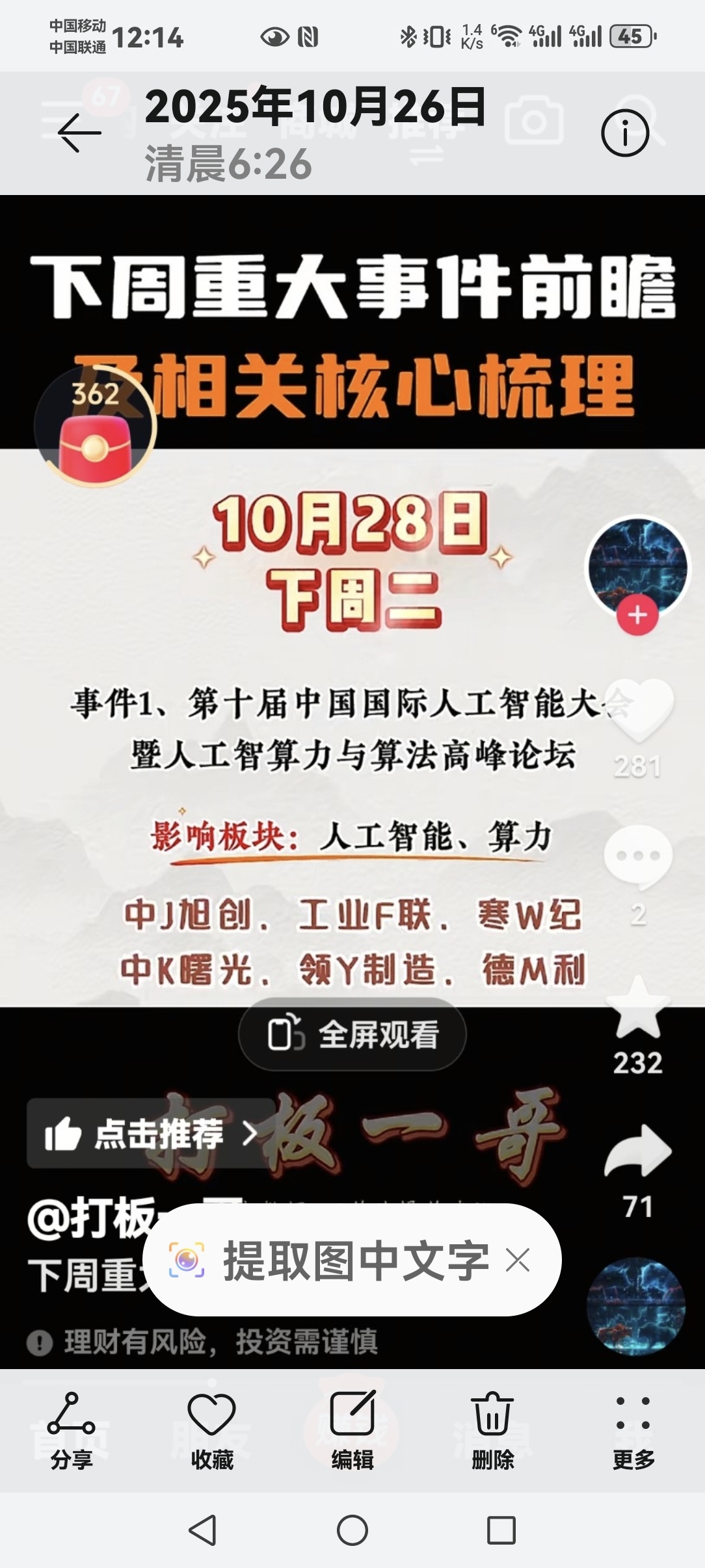 温馨提示: 1.根据《证券法》规定,禁止编造、传播虚假信息或者误导性信息,扰乱证券市场;2.用户在本社区发表的所有资料、言论等仅代表个人观点,与本网站立场无关,不对您构成任何投资建议。用户应基于自己的独立判断,自行决定证券投资并承担相应风险。《东方财富社区管理规定》