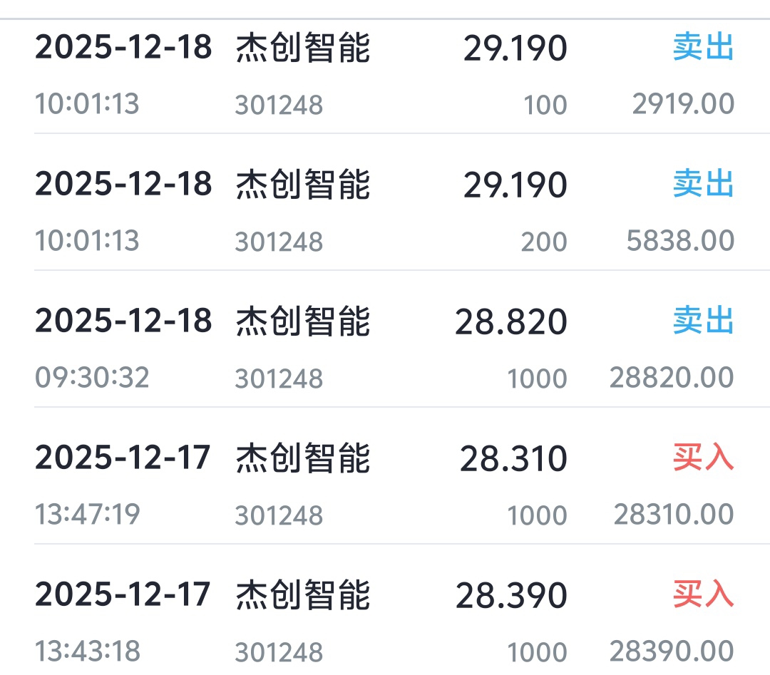 $杰创智能(SZ301248)$ 昨天买今天卖,爽,隔几天做一次差价,明天大跌再接回来