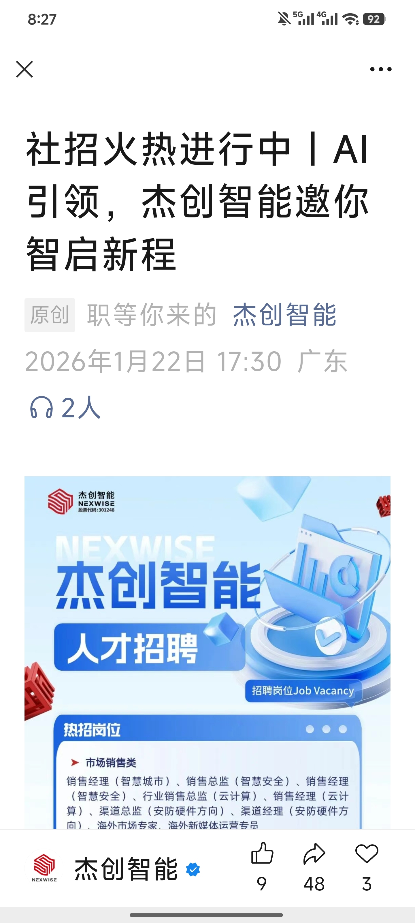 $杰创智能(SZ301248)$ 什么公司年底还在招人呀
