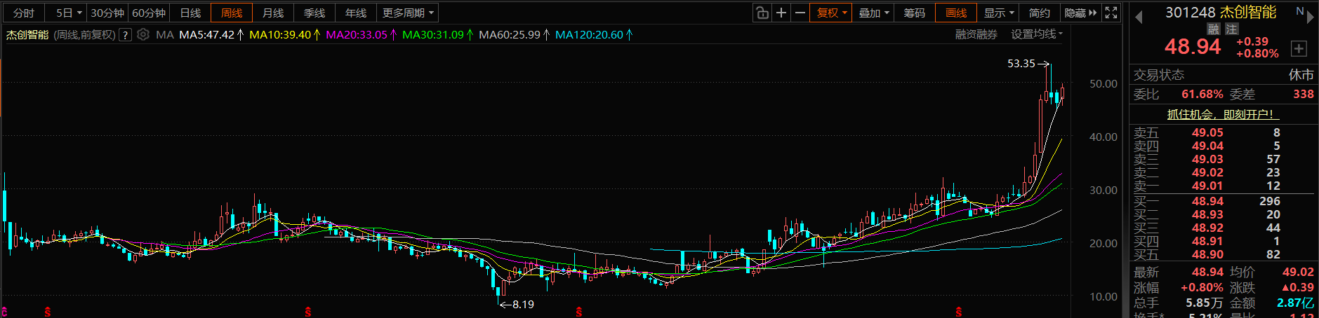 杰创智能 48.94 突破