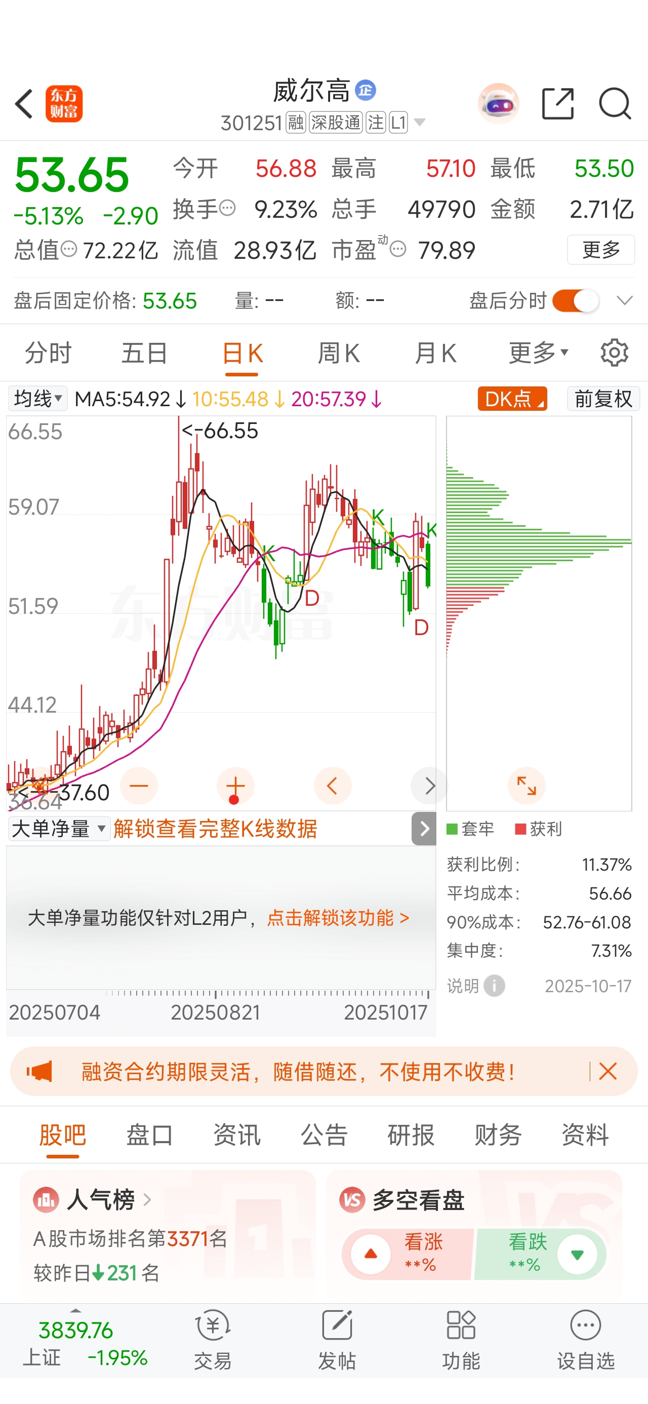 $威尔高(SZ301251)$ 看这个筹码峰是没有什么人赚钱,这个是不是真的啊