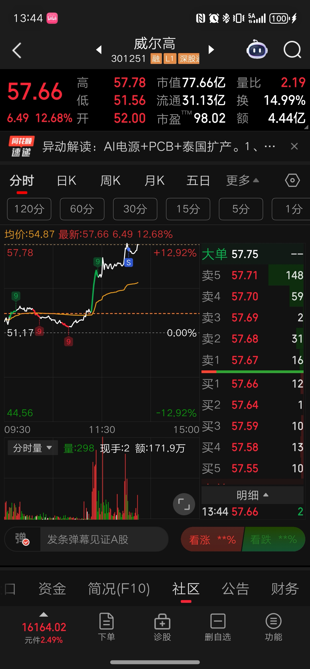 $威尔高(SZ301251)$ 留三分之二继续蹲守