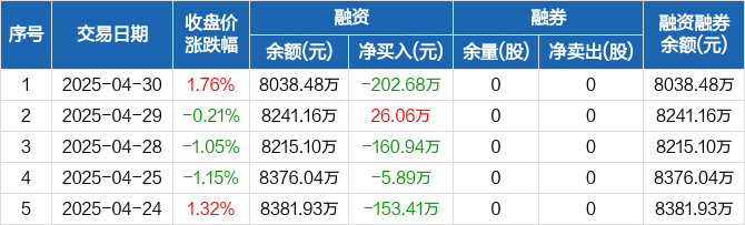同星科技:融资净偿还202.68万元,融资余额8038.48万元(04-30)