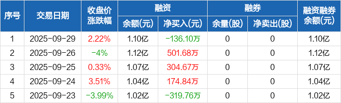 同星科技:融资净偿还136.1万元,融资余额1.1亿元(09-29)