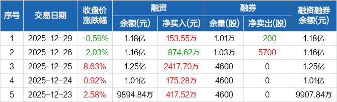 同星科技:融资净买入153.55万元,融资余额1.18亿元(12-29)