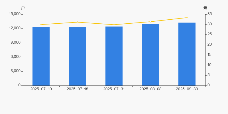 截至2025年9月30日,公司最新总股本为1.52亿股,其中流通股本为3808万股。户均持有流通股数量为2878股,较上期略有下降;户均流通市值9.59万元。