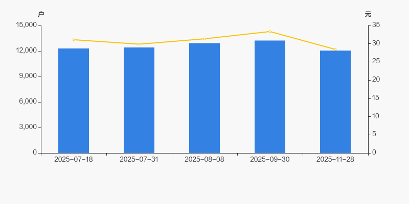 2025年7月18日至今,公司股东户数有所下降,区间跌幅为2.04%。2025年7月18日至2025年11月28日区间股价下降8.55%。