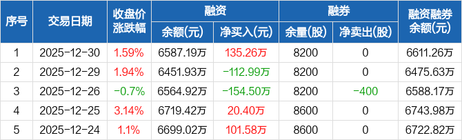 通力科技:融资净买入135.26万元,融资余额6587.19万元(12-30)