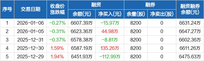 通力科技:融资净偿还15.97万元,融资余额6607.39万元(01-06)