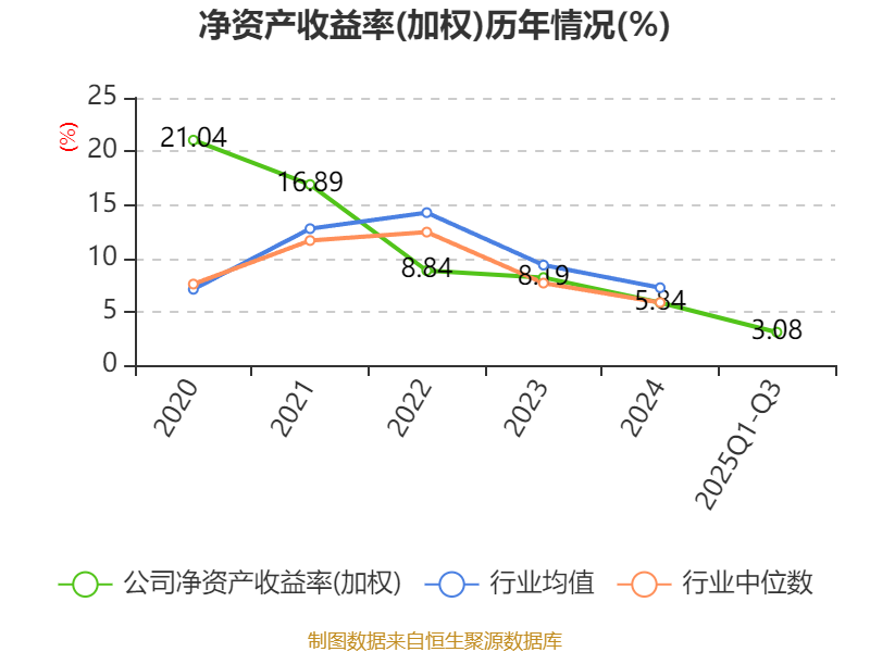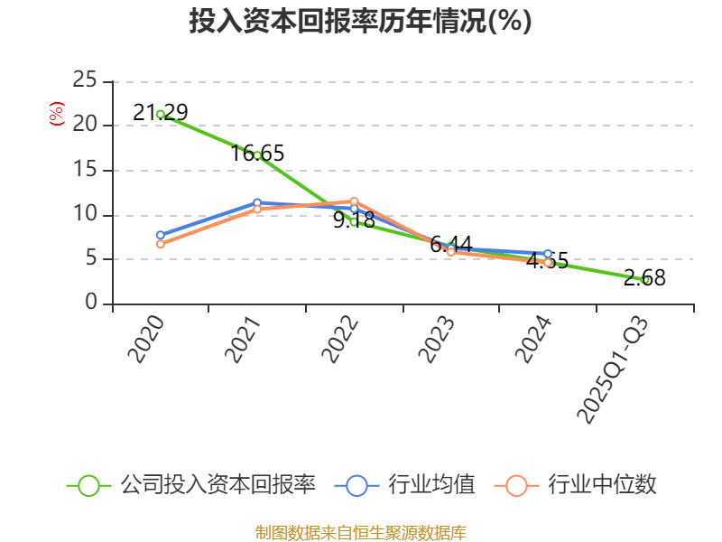 盈利能力方面, 2025年前三季度公司加权平均净资产收益率为3.08%,同比下降0.65个百分点。公司2025年前三季度投入资本回报率为2.68%,较上年同期下降0.1个百分点。