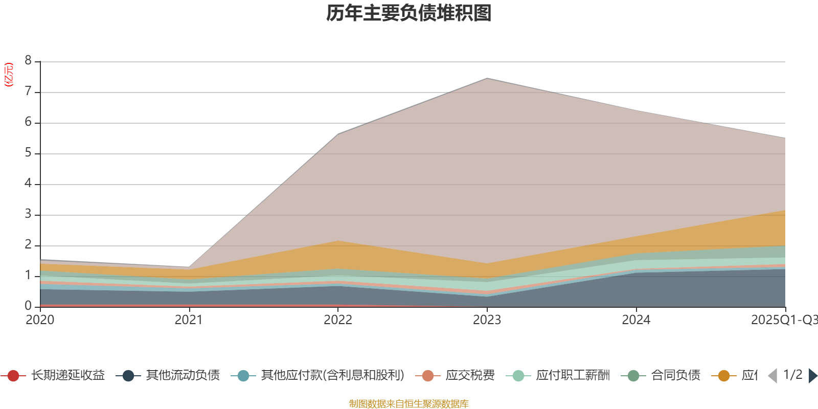 负债重大变化方面,截至2025年三季度末,公司短期借款较上年末减少42.83%,占公司总资产比重下降6.9个百分点;应付票据及应付账款较上年末增加106.22%,占公司总资产比重上升2.76个百分点;合同负债较上年末增加76.05%,占公司总资产比重上升0.79个百分点;其他流动负债较上年末增加10.62%,占公司总资产比重上升0.75个百分点。