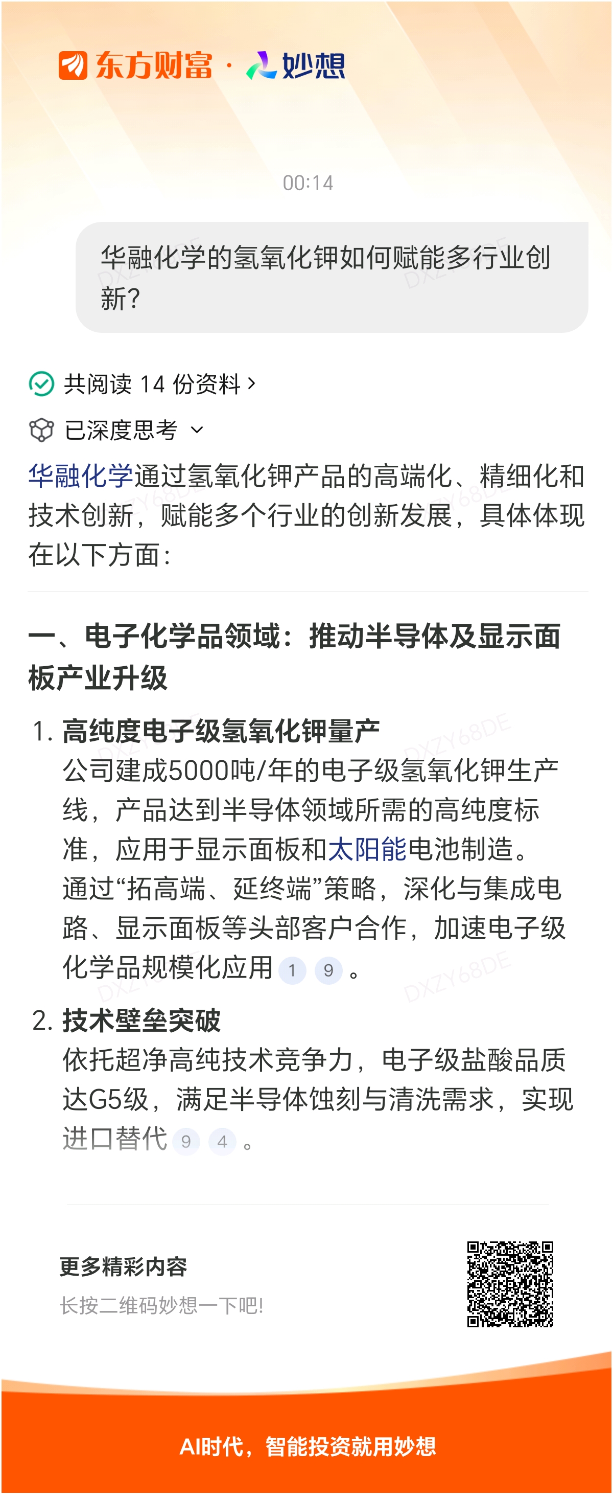 #@妙想,你怎么看?# 妙想一下:华融化学的氢氧化钾如何赋能多行业创新?